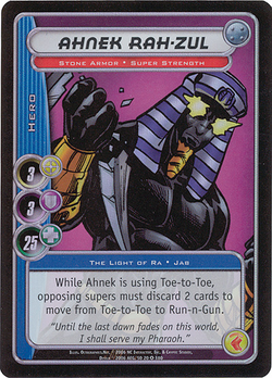 | Card Text: | While Ahnek is using Toe-to-Toe, opposing supers must discard 2 cards to move from Toe-to-Toe to Run-n-Gun. |