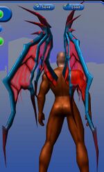 Wings are Back Detail costume options. They do not automatically appear on a character after crafting or earning them. They must be added by the player, either during character creation or at a Tailor, paying normal costume-alter fees or spending a Costume Change Token.